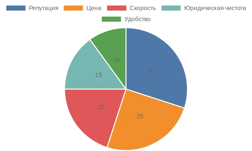 Диаграмма отражает приоритеты клиентов при выборе сервиса в Санкт-Петербурге, где репутация лидирует. Такой подход помогает сбалансировать ожидания и реальность.